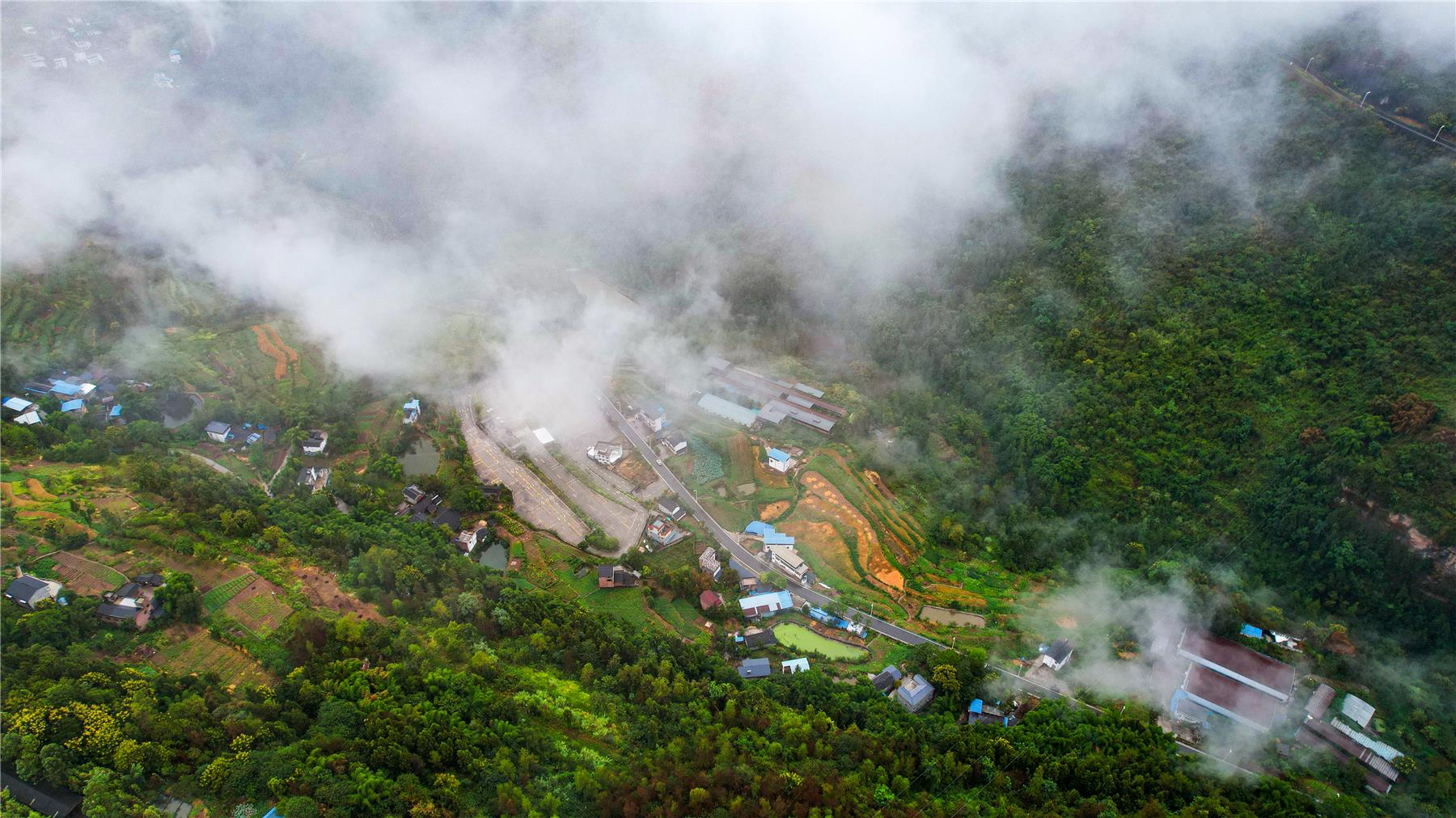 8月30日,历经一个多月的高温干旱,我县终于迎来了久违的甘霖。在盘龙街道石楼村云利路旁,用无人机从空中俯瞰,层层薄雾笼罩之下,稻田与错落有致的农舍,若隐若现、相互映衬,构成了一幅美丽的生态田园画卷。(谭启云 摄)