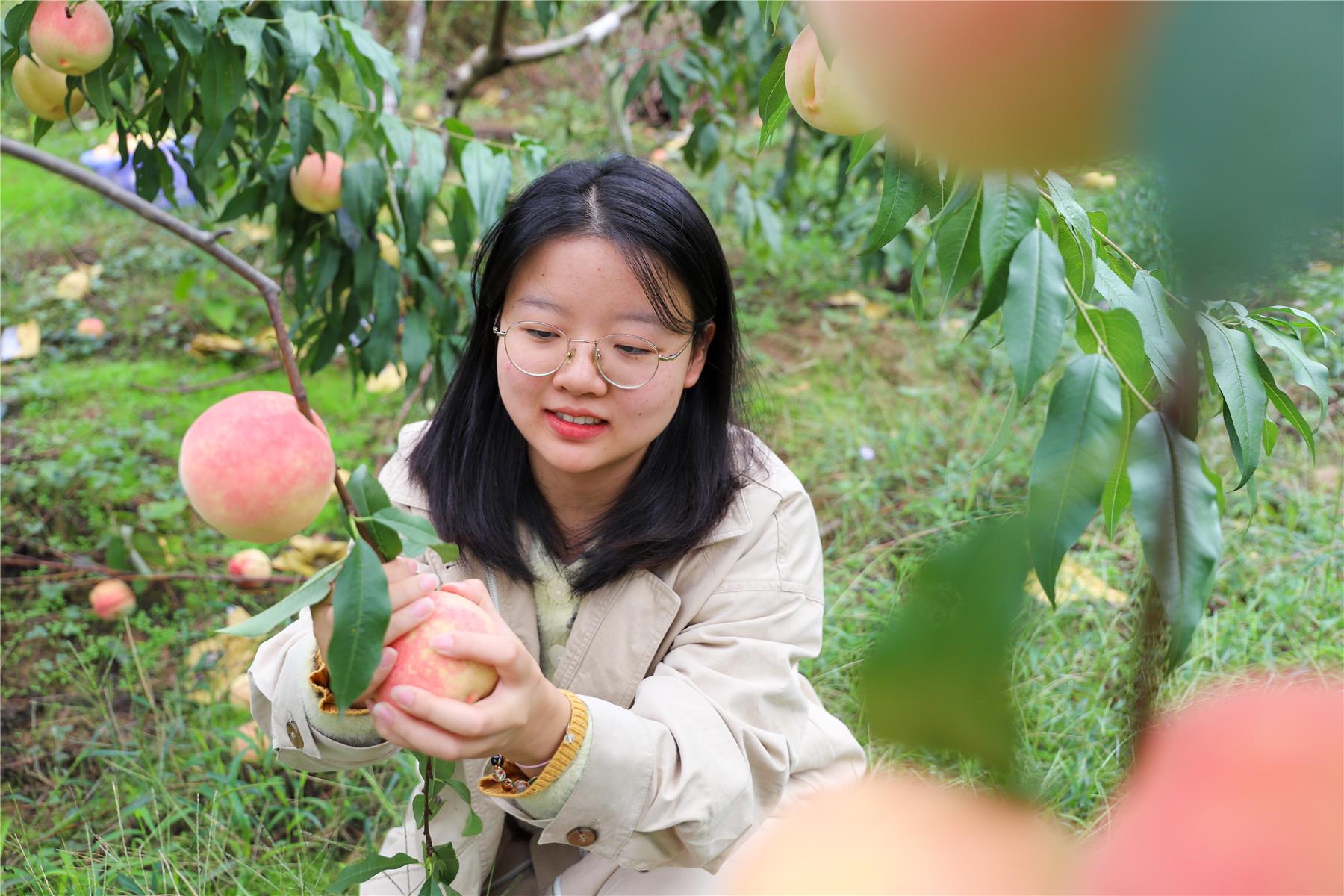 走进桃园,浓浓果香扑鼻而来,让人垂涎欲滴。低矮粗壮的桃树上,果实累累。绿叶掩映下,一个个冬桃缀满枝头,沉甸甸的果实把树枝压弯了腰,游客们一边漫步说笑,一边采摘果实,感受着采摘乐趣。“满山的桃子红彤彤的一片,长势看着非常喜人,我们尝了冬桃,口感很脆很甜。”游客陈怡欣说。
