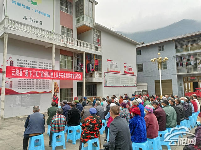 活动中,“磐下雲虹”宣讲队员带领现场群众解读了党的二十大的重大意义,用老百姓听得懂的语言、喜闻乐见的方式,介绍了在党的领导下云阳城市建设、交通、旅游等方面发生的变化。队员们还用龙缸景区的悬崖清洁工的事迹生动形象地展现了云阳以实际行动深入践行习近平总书记“绿水青山就是金山银山”的生态环保理念。