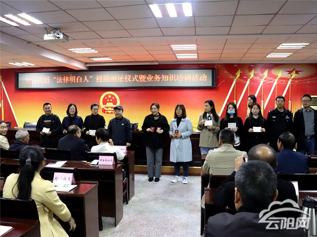 云阳网讯(记者 郑红均 张扬凤)10月27日,双江街道开展“法律明白人”授徽颁证仪式暨业务知识培训活动。