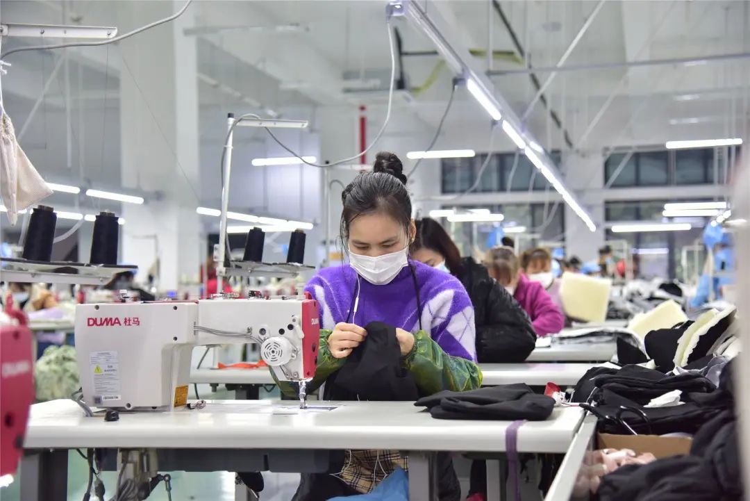 当把目光从田间转向车间时,记者看到位于工业园区人和组团的重庆兴杭服饰有限公司生产一线忙碌而有序。
