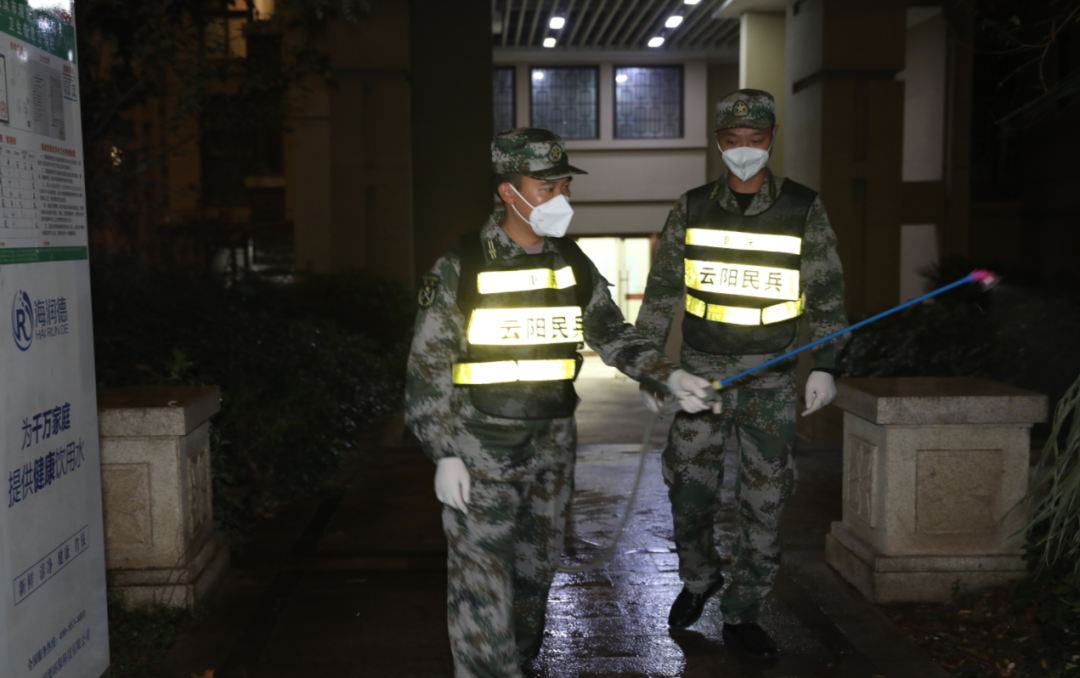 在平安镇,一位伤残退役军人志愿者骑着电动车穿行在高风险区,为居家隔离的乡亲们送物资。他说:“虽然我腿脚不方便,走得慢、做得慢,但是我可以慢慢走、慢慢做。”面对驻地多点散发、来势汹汹的疫情,双江街道基干民兵积极响应号召,连续奋战在管控区物资保障、场所消毒、卡口执勤等防疫一线,为每户居民提供每天两次左右的服务,最多的家庭有5次以上……
