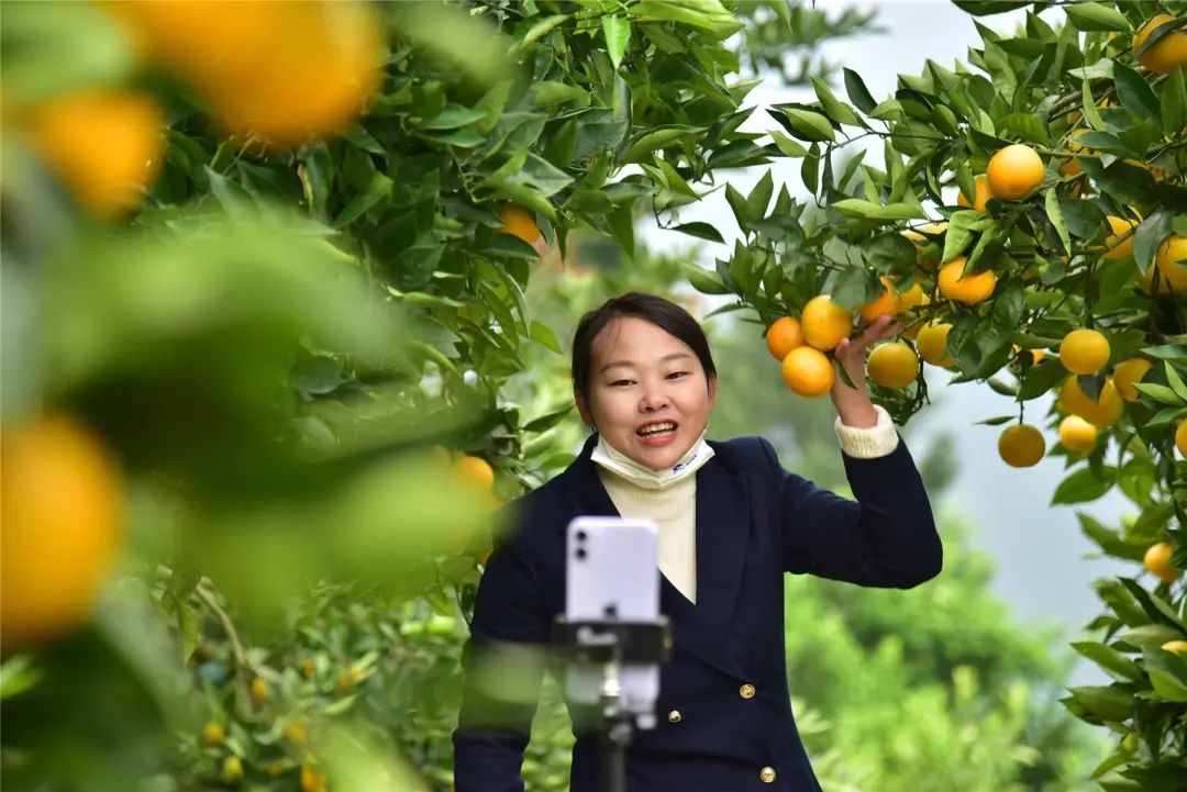 今年,云阳1.8万公顷柑橘将于12月初进入成熟期,果农们也提早做起了准备。在云阳镇宝塔村,一个个黄橙橙的脐橙挂满枝头,果树边,云阳县赫弘农业有限责任公司负责人柳井兰正在直播:“今天下单它还挂在树上,明天就到家里了,农场直发不新鲜不要钱!”记者了解到,柳井兰经营着“兰妹妹”“兰妹果园”抖音号,主要销售时鲜水果。