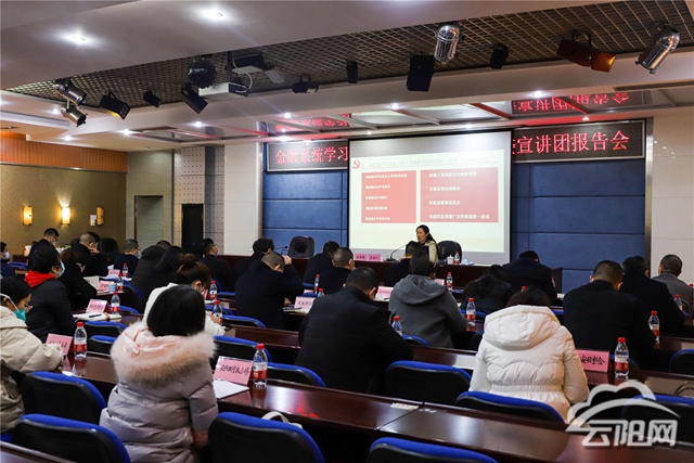 县人民银行、县银保监组、在云银行、保险、证券、担保、典当公司、小额贷款公司等主要负责人及县金融工作服务中心干部职工参加宣讲报告会。