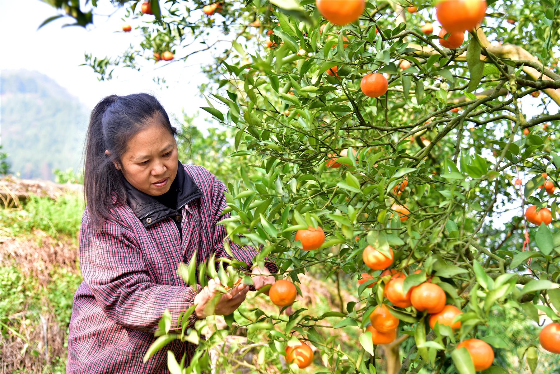 当前正是柑橘采摘时节,红彤彤的橘子压满枝头,村民都忙着采摘、装筐,呈现一派忙碌的丰收景象。巴阳村柑橘种植户赖兴云家里有80棵红橘树,产量预计可达1万斤左右。