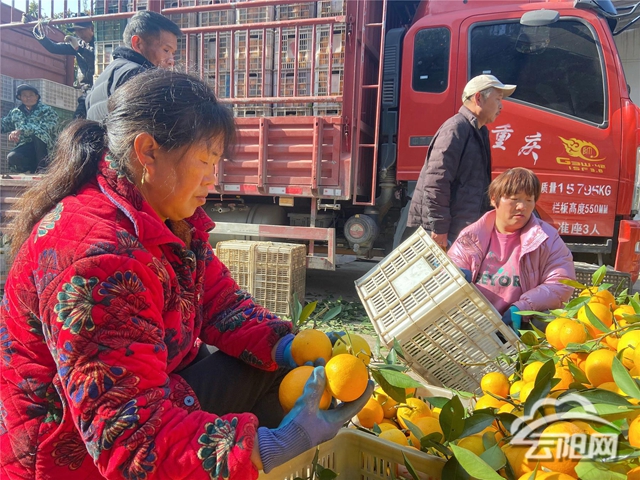 走进养鹿镇青杠村逸园生态果园,金黄饱满的柑橘密密匝匝地挂在枝头,在冬日里散发出阵阵橘香。村民们正穿梭于柑橘树间,将新鲜的柑橘采摘后背往收购处,挑选、称重、装箱上车,一派丰收繁忙的景象。