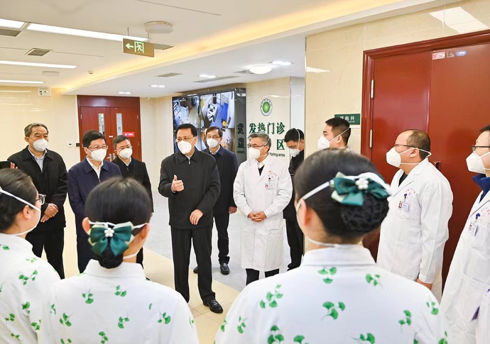 目前,疫情防控已进入新阶段。袁家军、胡衡华来到市中医院南桥寺院区,走进发热门诊监控区,听取全市疫情医疗救治工作情况汇报,通过视频察看ICU病房、急诊等情况。看到刚刚换班的医务工作者,袁家军同大家交谈,向他们致以新年祝福。他说,面对疫情,全市广大医务工作者负重前行、冲锋在前,连续作战、十分辛苦,向大家表示衷心感谢、致以崇高敬意。他要求各级党委政府、有关部门要关心关爱医务人员,做好后勤服务,帮助大家解决后顾之忧,让医护人员全力以赴投入医疗救治。袁家军强调,疫情防控仍是最吃劲的时候,坚持就是胜利,团结就是胜利。要更加科学精准抓好疫情防控,坚持重在管理,落实“乙类乙管”要求,科学高效配置资源力量,抓好分级诊疗救治,发挥医联体、医共体作用,推动医疗资源向农村下沉,进一步抓好保健康、防重症工作,齐心协力守护人民生命安全和身体健康。