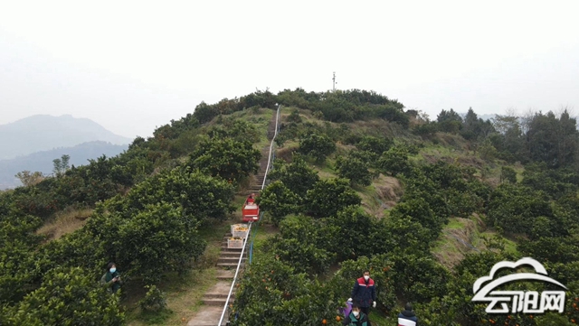 一条长长的单轨、一节“小车厢”,眼前这个和轻轨列车有异曲同工之妙的组合就是双龙镇三堂村柑橘园新启用的单轨运输车,只需两三个劳动力,十多筐黄澄澄的鲜果子就坐上了“小火车”,在山地间平缓驶向山下的目的地。“这个轨道车可以装12筐柑橘,一筐50斤,一车就能够运600斤,按照一个人背50斤算的话,12个人才能顶得上一台单轨车。”云阳县乐惠农业专业合作社负责人王海洋介绍道。
