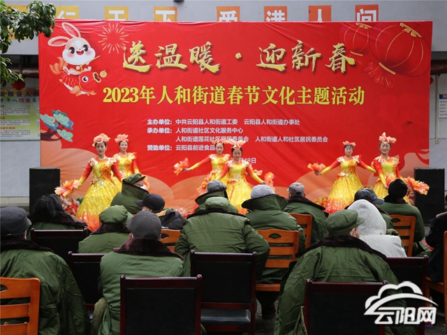 活动在一场欢快热闹的《鼓舞》中拉开序幕,舞蹈演员们身着喜庆亮眼服饰,用优美的舞步跳出对新春的憧憬;一场串烧现代舞充满动感活力,将现场氛围烘托起来;随后,歌曲《云阳之恋》《最炫民族风》等轮番上演,老人们津津有味地观看着节目。