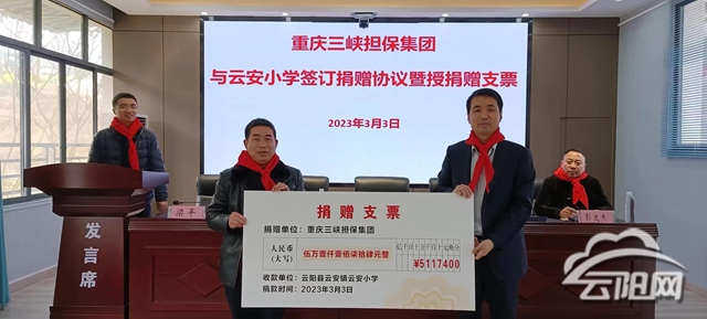 云阳网讯(记者 李歆宇 通讯员 何中兵)3月3日,重庆市三峡担保集团赴云安小学开展捐资助学活动,用实际行动深入贯彻党的二十大精神,切实履行国企的社会责任担当。