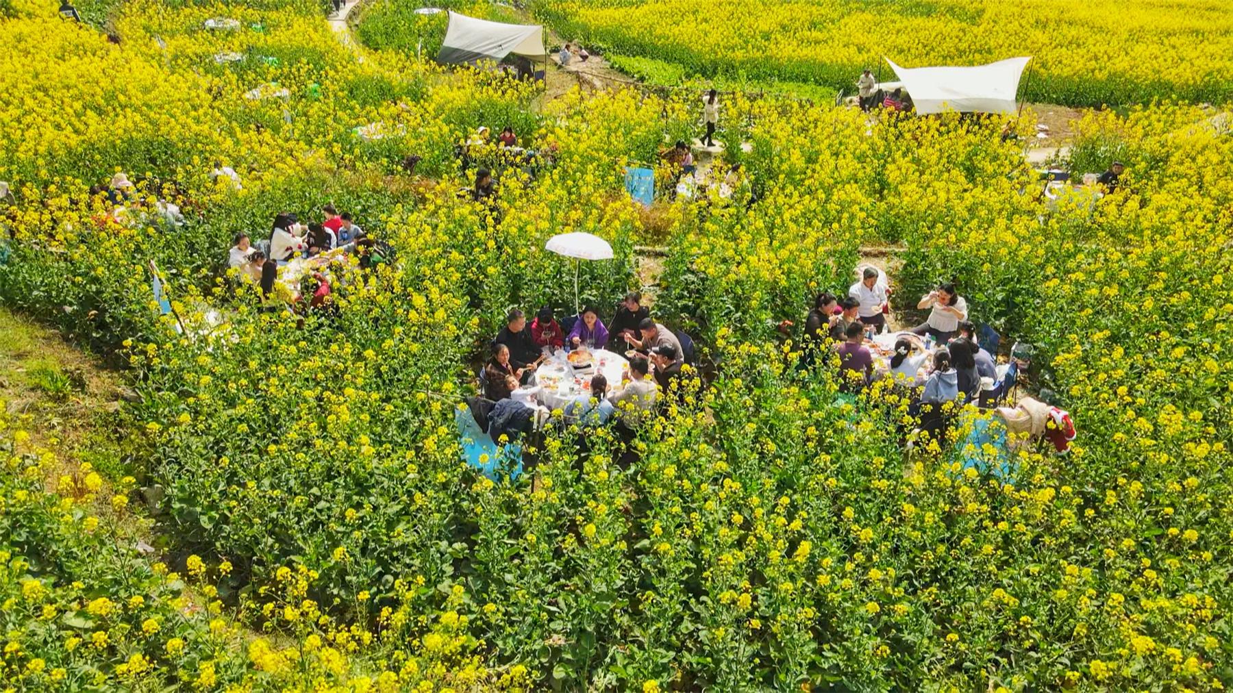 阳春三月,正值栖霞镇全民文旅活动月。围绕油菜花核心景区1000亩花海景观,当地党委政府通过举办一系列文旅活动,集聚商气人气,丰富消费业态,延伸油菜产业链,促进农旅融合发展。这道深受游客青睐的花田火锅,正是创造了新的消费增长点,辐射带动了餐饮消费和农产品销售,帮助农户赚个盆满钵满。