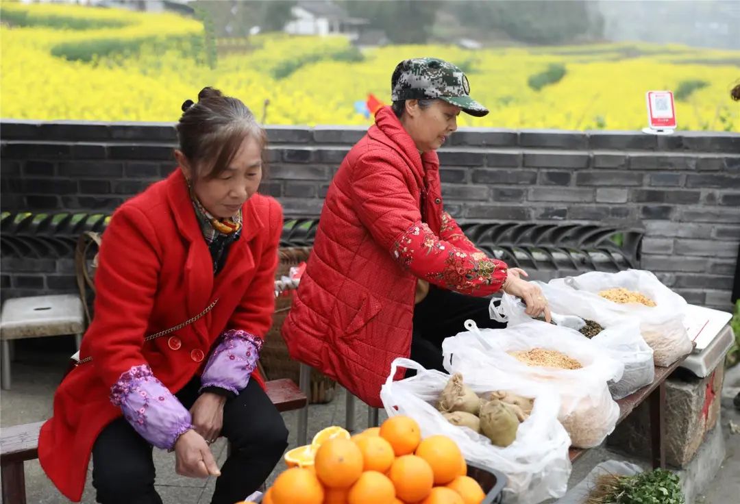 村民鲁登秀把自家种的柑橘、豌豆等农产品