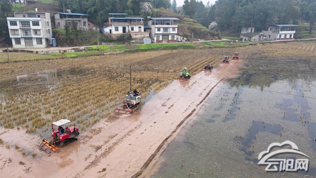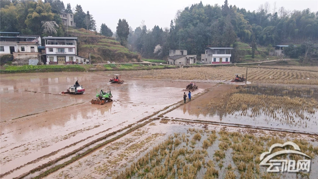 近段时间,正是稻农整田平土的时节。在云阳县水稻种植大镇的路阳镇,记者看到,伴随着隆隆响声,6台大型耕地拖拉机在田间来回穿梭,好一幅“铁牛”闹春耕的景象。