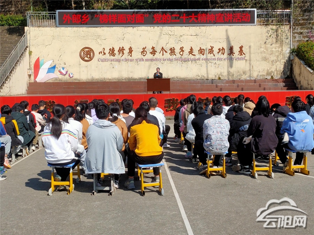 云阳网讯(通讯员 杨关燕)3月15日,“榜样面对面”党的二十大精神宣讲队云阳分队成员走进外郎初中,在大操场上为师生宣讲党的二十大精神。