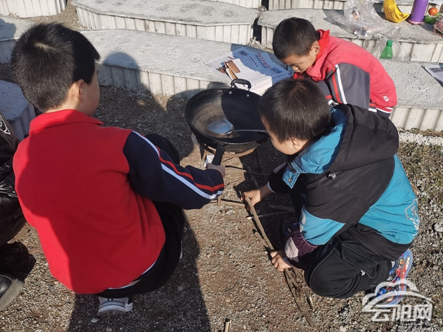 活动中,各中队在老师的指导和家长的协助下,搭灶、生火、洗菜、剁肉,分工协作,各中队全员参与,团结一心,在紧张而又忙碌的过程中,体验劳动的乐趣,忙得不亦乐乎。