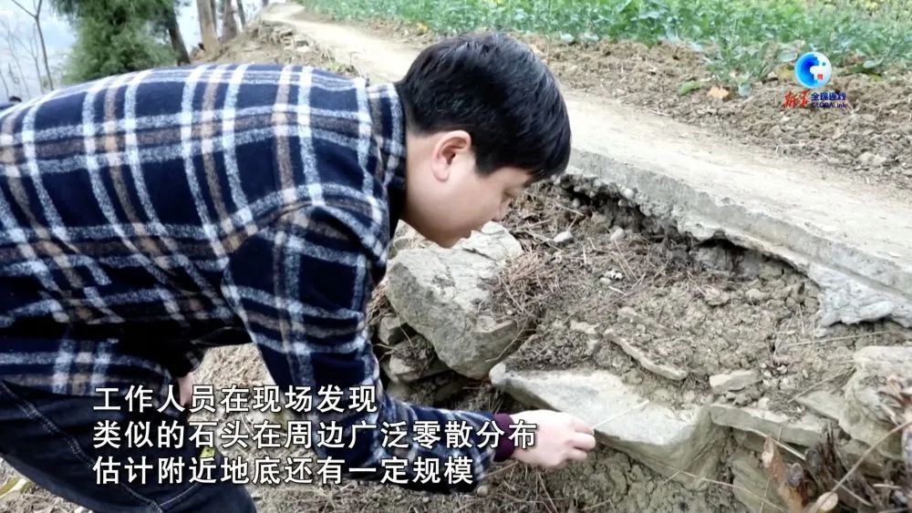 工作人员在现场发现,类似的石头在周边广泛零散分布,估计附近地底还有一定规模。