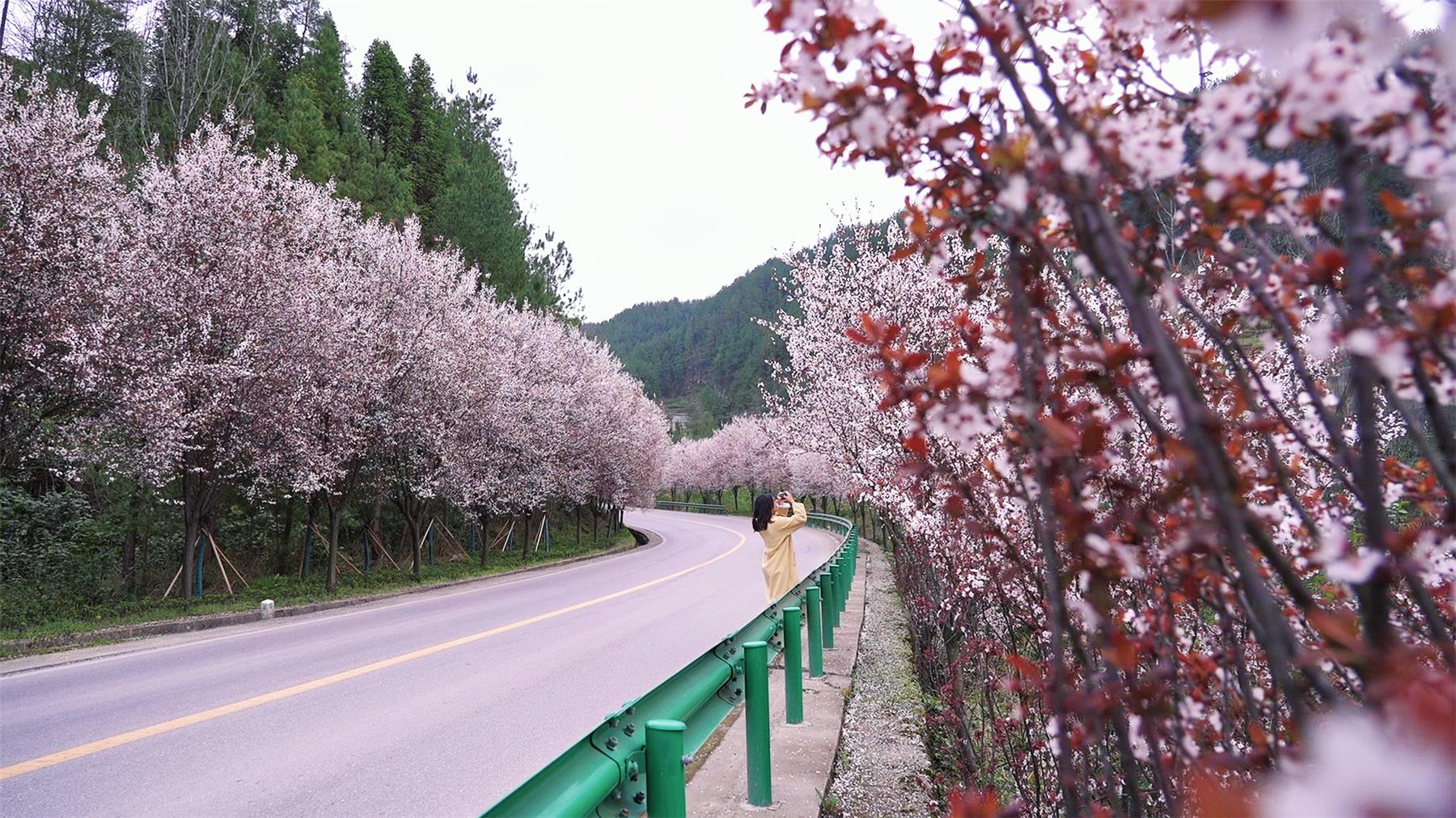 “每年三月份的时候,这里公路两边的花都开得特别漂亮,今天我和朋友专门从县城过来拍照打卡。”游客刘晓说,漫山遍野的李花盛开,远远望去像刚下过雪一样,非常浪漫。