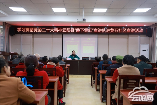 云阳网讯(实习生 贺元河 匡宁娟)3月22日,云阳县“磐下雲虹”宣讲队走进黄石镇黄石社区开展党的二十大精神宣讲活动。