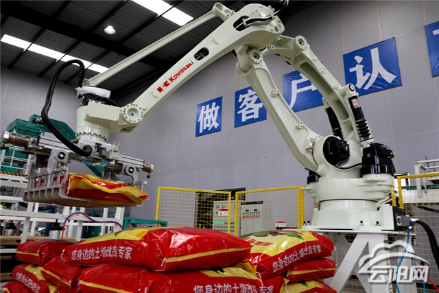 云阳网讯(记者 刘兴敏)提袋、套袋、检重、喷码,到智能机器人抓包、堆码等全过程实现一气呵成,这是4月3日,云阳县畜禽粪污处理中心有机肥全自动智能生产线投入使用后的场景。