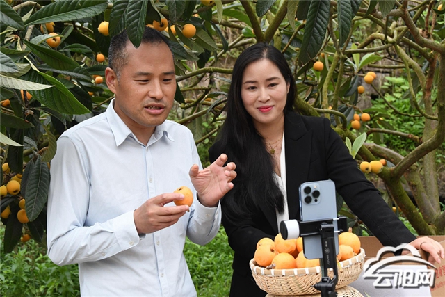 为破解枇杷销售难题,巴阳镇永利村村支两委和驻村干部积极探索销售渠道,利用抖音、快手等网络平台直播带货,联系水果批发商上门收购,通过线上线下相结合的方式销售枇杷,助农增收。