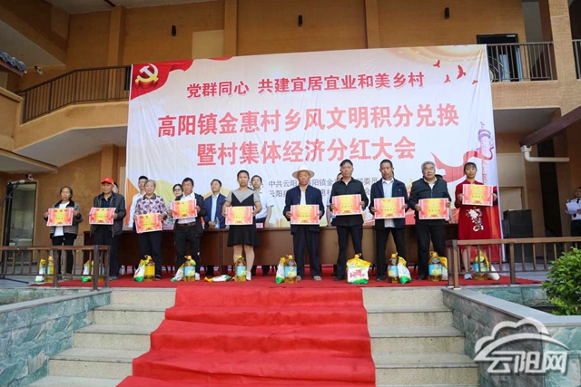 云阳网讯(记者 贺元河)“大家排好队,一个一个来,左边是积分兑换,右边是分红。”5月20日,在高阳镇金惠村,村委会工作人员正挨个指导村民进行乡风文明建设积分兑换,领取集体经济分红。