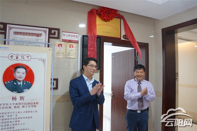 当天,县中医院负责人与第三军医大学新桥医院教授杨辉为新成立的“杨辉教授云阳县中医院工作室”进行揭牌。杨辉是第三军医大学新桥医院神经外科主任,医学博士,主任医师、教授、博士研究生导师。从事神经外科工作20余年,具备渊博的专业理论知识和丰富的临床经验,手术技能精湛,科研创新能力强,有极强的领导和组织能力。目前我县中医院已与第三军医大学新桥医院神经外科中心建立了良好的合作交流关系,通过专家特聘、技术帮扶、小组成员专科培训、远程会诊等多种学习方式不断与先进理念接轨,与前沿技术同行,让云阳百姓足不出户便可享受到顶级专家的医疗服务。