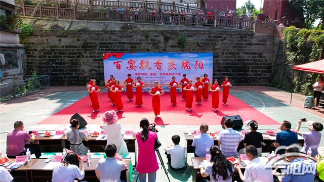 云阳网讯(记者 谭启云)包粽子、吃百家宴、看旗袍秀,6月20日,青龙街道天鹅社区以美食为媒介,在社区内开展了一场“百宴飘香庆端阳”为主题的端午节活动。街坊邻里欢聚一堂,包粽子,吃百家宴,看旗袍秀,品尝幸福滋味,共话邻里情深。