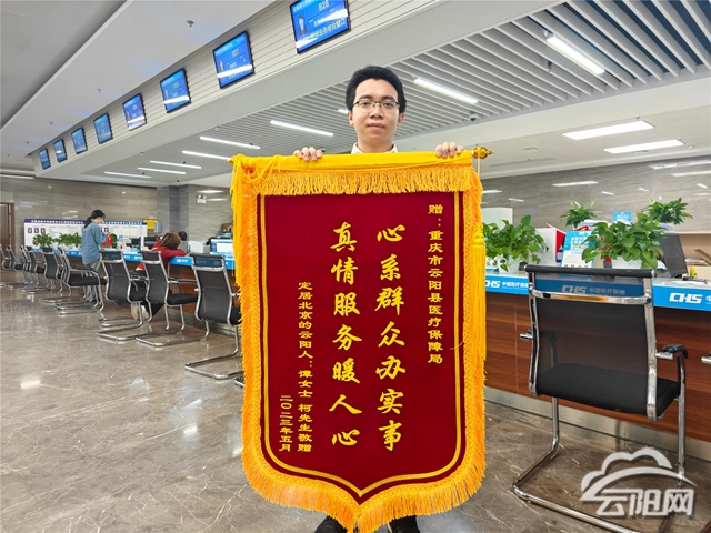 云阳网讯(记者 贺元河)近日,县医疗保障事务中心收到了一面从北京邮寄过来的锦旗,上面写着“真情服务暖人心,心系群众办实事”的字样。