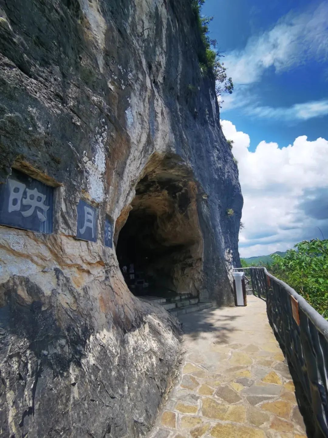 有一天晚上,正是八月十五,天黑了,还不见秦映月回来,汪月彤心里十分着急。她不断抬眼向石洞望去,竟将石洞望穿了,刚好月亮正升起,月光从洞中照过来,石洞内光亮如灯。汪月彤快步从洞中穿过,去寻找自己心爱的人。