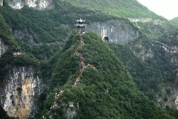 穿洞,是指穿山而过、两端透光且洞长大于洞宽的地貌景观。重庆的穿洞主要是由于地下水溶蚀以及岩石的差异风化、重力崩塌而形成。初始石灰岩地层的裂隙中有地下水,由于地下水长期侵蚀、溶蚀,小的裂隙逐渐形成溶蚀孔洞,之后逐渐连通形成了地下暗河和大型溶洞。在漫长的地质作用过程中,地表抬升地下水位降低,在重力和风化作用下,溶洞失去支撑的结构脆弱部分顶部塌陷,而少量结构坚固部分则保持完整,便形成了穿洞。