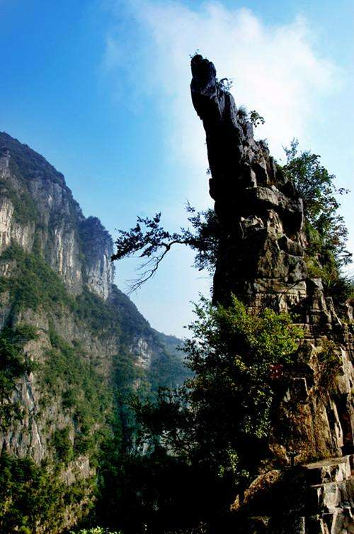 至今洞内还留下了几个很大的石脚印,洞壁上还留有几个硕大的五指齐全的石手印。汪月彤穿出石洞后还是不见秦映月,心里更加着急,于是她怀疑秦映月是不是掉到龙缸里去了。她急忙回到龙缸崖边,拼命地将龙缸里的水往外舀。龙缸里的水不断地往下降,舀出的水流进石笋河,河水不断上涨,河边的石笋随之长到六十多米。可是龙缸里的水舀干了,还是不见秦映月的踪影。从此后,龙缸里就再没有水了,石笋河边上的石笋也没降下去,至今直冲云天地长在那里。