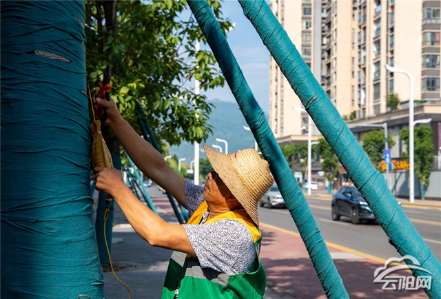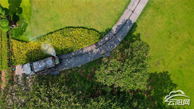 云阳网讯(记者 谭启云)今年以来,县城市管理局坚持“高标准、精细化、常态化”绿化工作原则,通过调整作业时间、增加洒水车次、挂滴灌袋、搭遮阳网、防病虫害、安装自动微喷设备等措施,全力呵护“城市绿肺”。