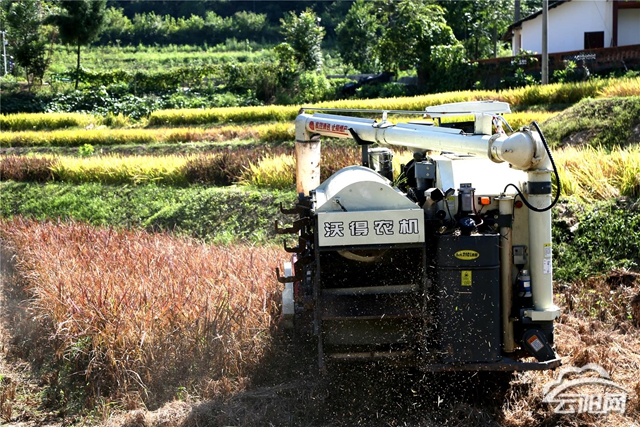 云阳网讯(记者 刘婷 赵艳林 向贞伟 赵泰庵)金秋送爽,稻穗垂帘。近日,凤鸣镇黎明古村的五彩水稻迎来丰收,连绵的稻田与老屋连为一体,满眼尽是“喜看稻菽千重浪”的醉人景象。当地正抢抓晴好天气,组织人工和机械进行收割,确保水稻颗粒归仓。