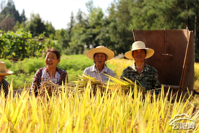 “我家流转了三亩田、一亩地,田是500元一亩,地是300元一亩,流转费一年下来有两千来块钱。平常也会在这里务工,今天收割稻谷是140块钱一天,确实是一个丰收年。”黎明村村民陈家莲和工友们一起乐呵呵地在稻田里一边收割一边说笑,呈现出一幅其乐融融的丰收场景。