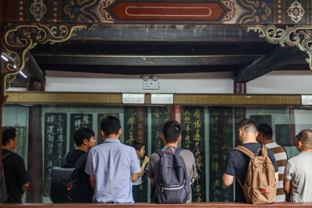 ▲9月11日,云阳县张飞庙,采访团正在欣赏苏轼的碑刻。记者 尹诗语 摄/视觉重庆