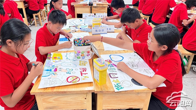 在云阳县第四初级中学,学生们通过短视频了解如何科学健康使用网络,并用水彩笔描绘出自己心中对网络安全的认识,将安全、健康、文明上网的理念内植于心、外践于行。
