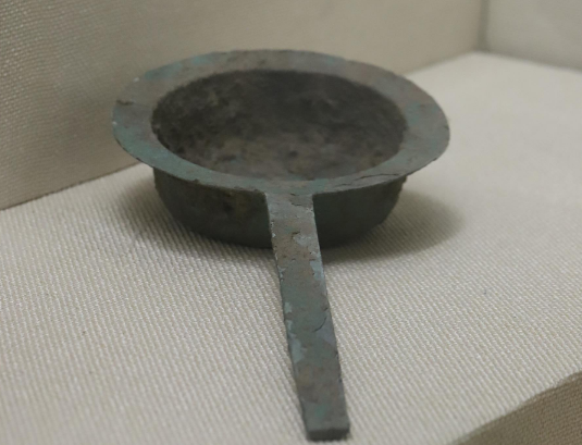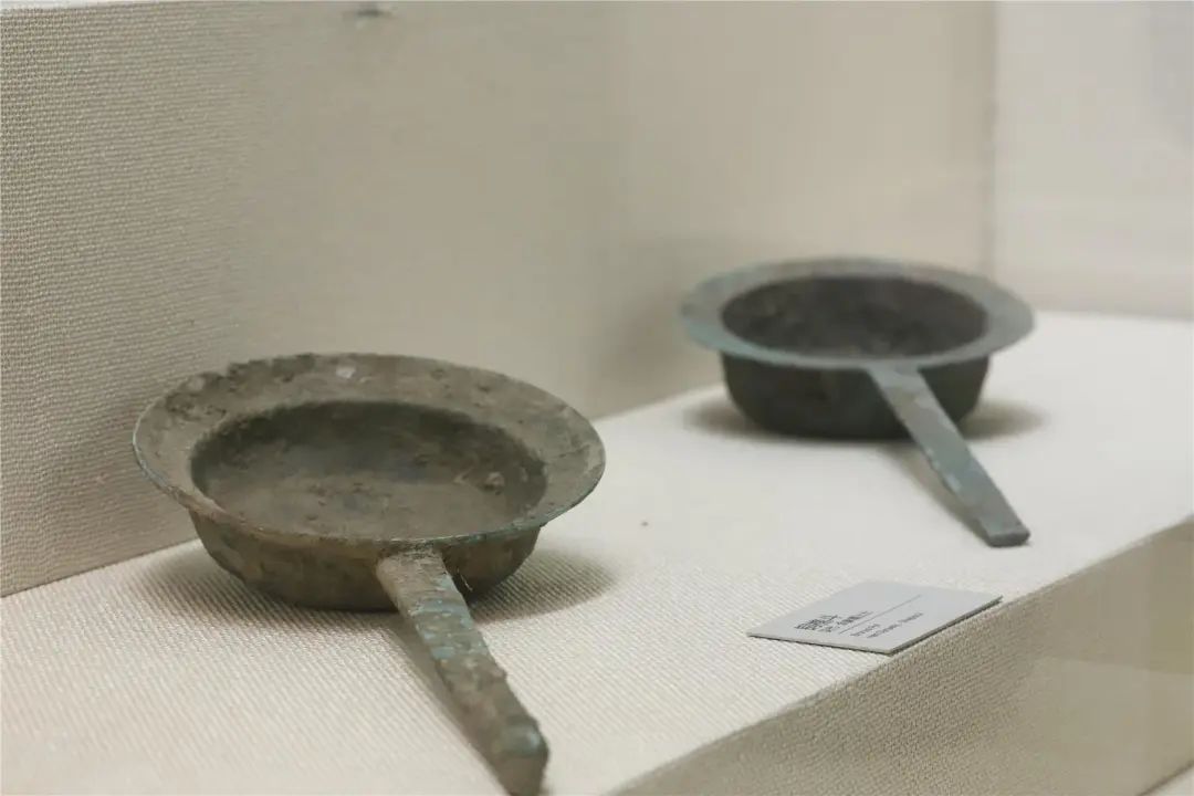 “铜樵斗在商代是作为刑具使用的,汉代开始就用作熨烫纺织物的一种生活用具。”云阳博物馆讲解员阮靓介绍道,汉代的铜樵斗以青铜质为主,使用时在熨斗的盆腹中加入炭火,一手执柄端,用导热过的盆底熨烫褶皱的衣物使其平整,从而达到正衣冠的需求。