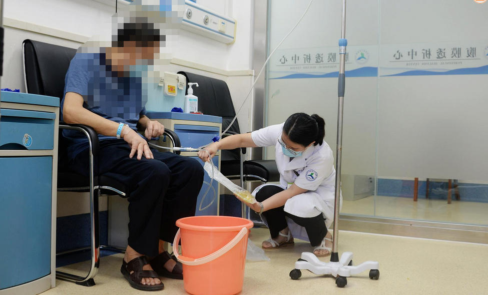 55岁的朱先生去年被确诊为尿毒症,在医生的建议下,选择了腹膜透析。他说:“腹膜透析从去年7月开始做的,已经有一年多的时间了。透析的方法很简单,很容易上手,自己在家就可以做。”