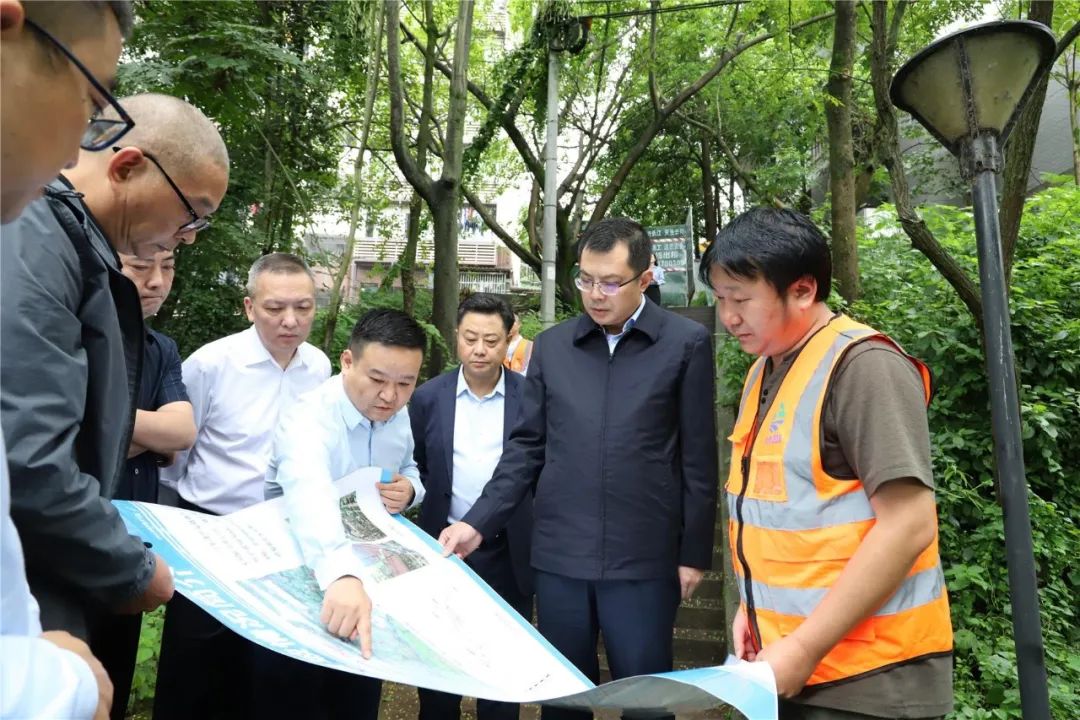 在双江街道梨园社区沙田坡滑坡点,覃昌德与地质队员深入交流,详细了解滑坡点形成、监测、治理等情况,要求要加强监测预警,完善应急处置预案,加快推进滑坡点治理,全力确保周边群众生命财产安全。
