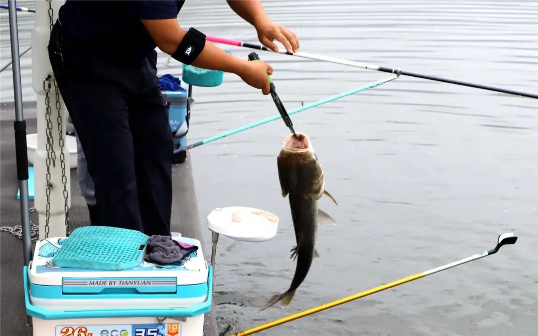 “上鱼了!这条鱼有点废杆,肯定是条大鱼!”来自四川的参赛选手陈杰正在与一条十来斤的白鲢“作斗争”,凭借丰富的经验把鱼打捞上岸后,他的脸上布满了笑容。