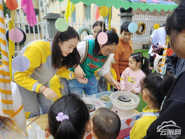 “大家快来呀,好吃的棉花糖!”“快来买冰粉吃,好吃又便宜!”“冰糖葫芦,又脆又甜,才卖1元啦!团团糖葫芦、食肠想你、一间糖水铺和冰粉小铺被围得水泄不通,一场“美食”盛宴在一阵阵叫卖声中拉开了序幕!钵钵鸡、狼牙土豆、棉花糖、烤肠等特色美食诱惑着每个人的味蕾。孩子们用自己手里的活动币,“精打细算”购买自己喜欢的美食。“冰粉好吃!”“棉花糖好漂亮!”“糖葫芦真甜呀!”孩子们脸上洋溢着幸福的笑容,对美食的夸赞一声又一声。“八月十五月儿圆,爷爷为我打月饼呀!月饼圆圆甜又香呀,一块月饼一片情呀……”。手工制作月饼现场,孩子们在家长的带领下,干劲十足,揉团、压扁、包馅、压膜,一个个胖乎乎的月饼就“新鲜出炉”。孩子们品尝着芳香四溢的月饼,享受着同伴和老师们的祝福,分享着节日的快乐。“赏灯猜谜”“投壶显身手”“石磨豆浆”“画团扇”“集福字”……形式多样的游园活动,传递着满满爱国心、甜甜中秋情。