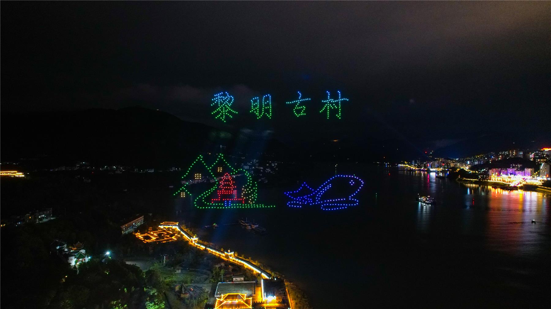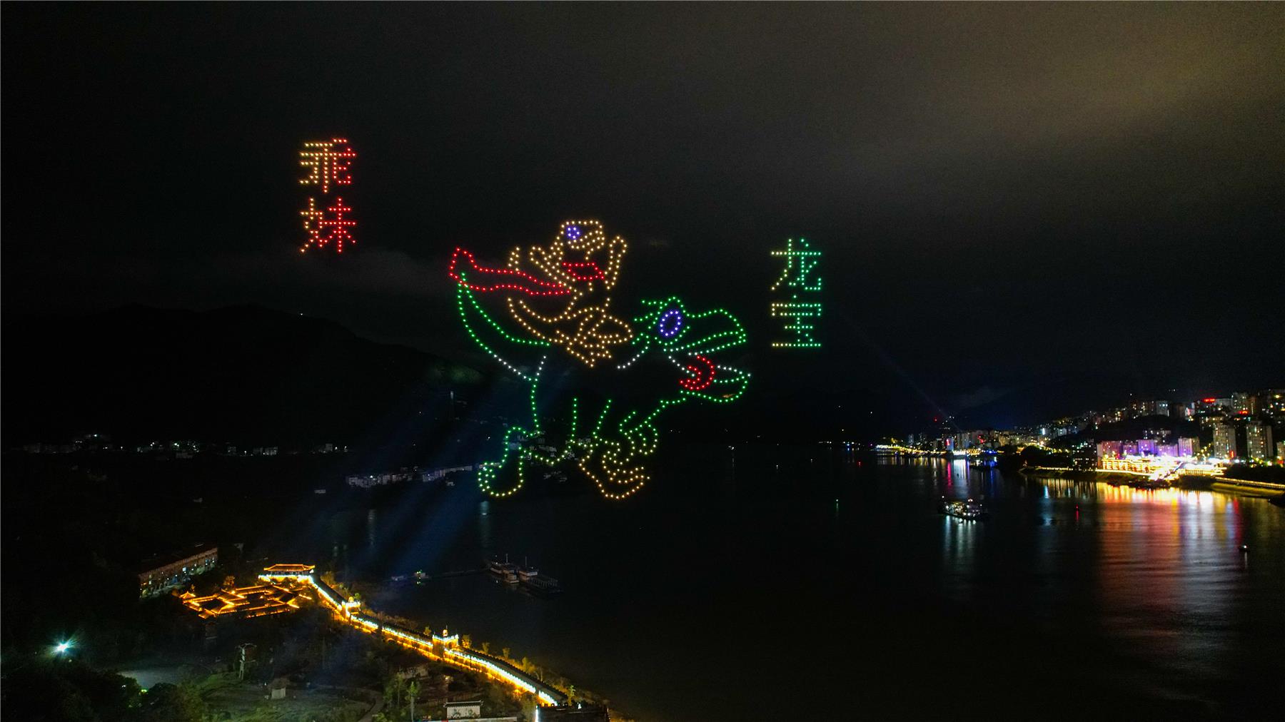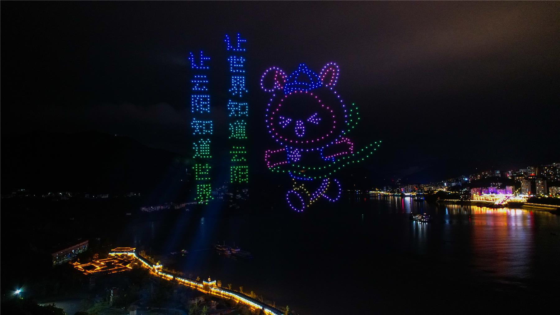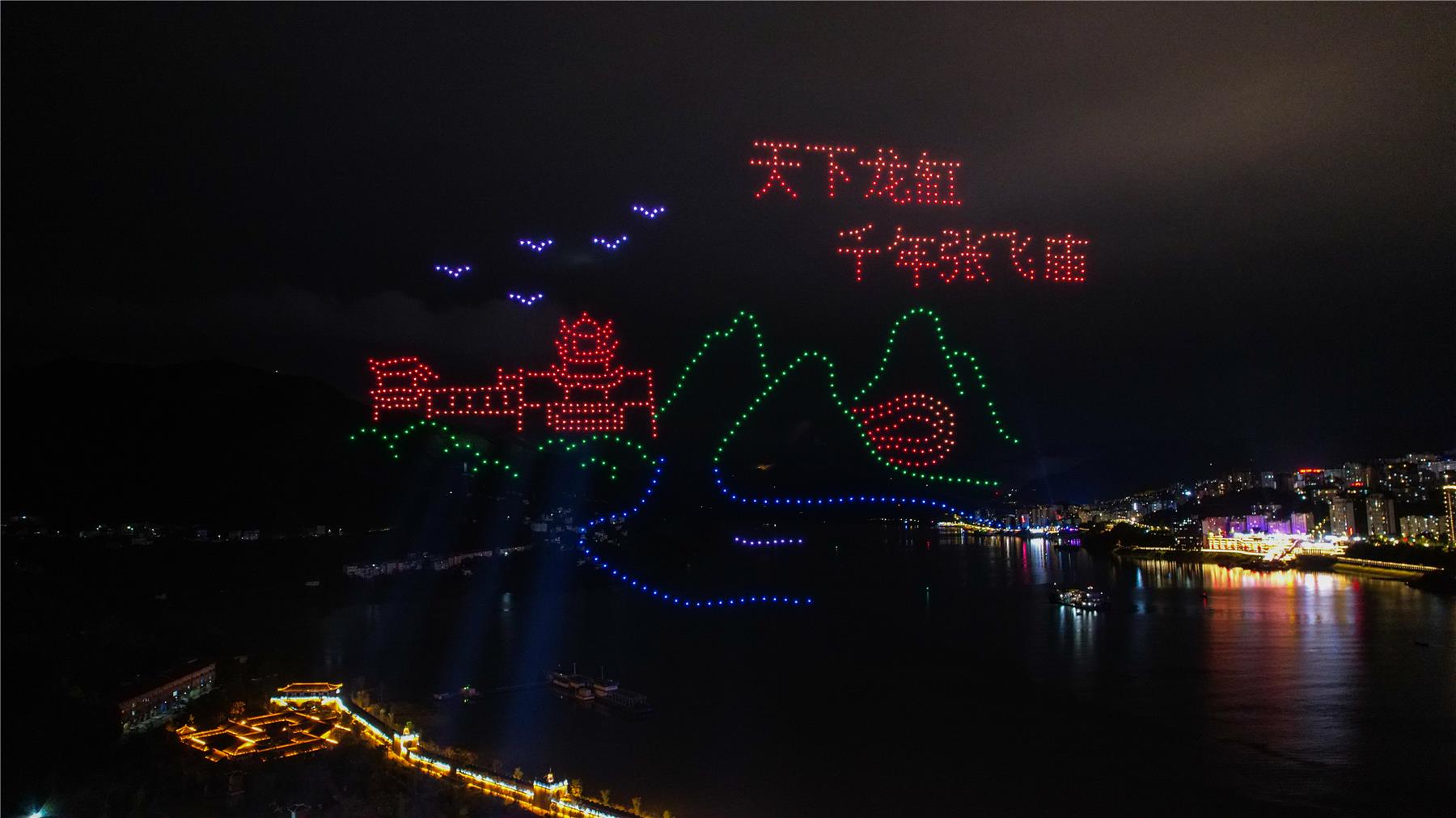 此次无人机编队表演还结合“全域旅游”主题,组成“云阳城市形象IP“兴云兔””、“云阳恐龙IP形象“龙宝”、“乖妹””“天下龙缸 千年张飞庙”“黎明古村”等充满地域文化特色的创意画面,与城市夜景交相辉映,尤其是江与城遥相呼应,在江面荡起层层烟波,如梦似幻,闪耀在三峡库区夜空,吸引了大量游客和市民驻足观看,让人沉醉其间。“无人机表演展示了张飞庙、天下龙缸等风景,很符合云阳当地的一个特色,能够感受到云阳独特的地域文化。”成都游客昝思思说。