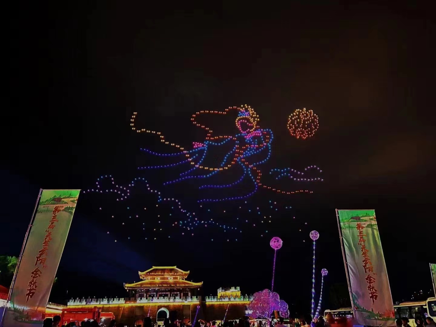 月满人间,灯火盈天。9月28日晚,在重庆市云阳县第三届“天生云阳”金秋节——首届长江国际华服艺术展上,800架闪烁着五彩灯光的无人机飞上夜空,变幻出绚烂的造型和标语,向人们传递着中秋、国庆的祝福。