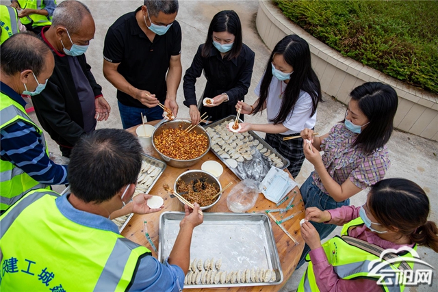 云阳网讯(记者 谭启云)“包饺子、吃月饼……”9月29日,一场别开生面的“工地饺子宴”在云阳县黄石高铁新城高铁大道工程二期项目部开席。云阳县北部新区管理委员会的职工们与黄石高铁新城高铁大道工程二期项目部的建设者们齐聚工地食堂,包饺子、吃月饼,感受着浓浓的节日氛围。