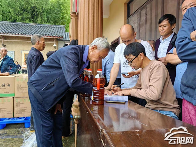 分红仪式上,村支书谢绍平为村民们详细介绍了大华村集体经济发展现状和资金使用情况,本次分红面向全村3241人,以人均1L油的物资分红模式,让村民共享集体经济成果。