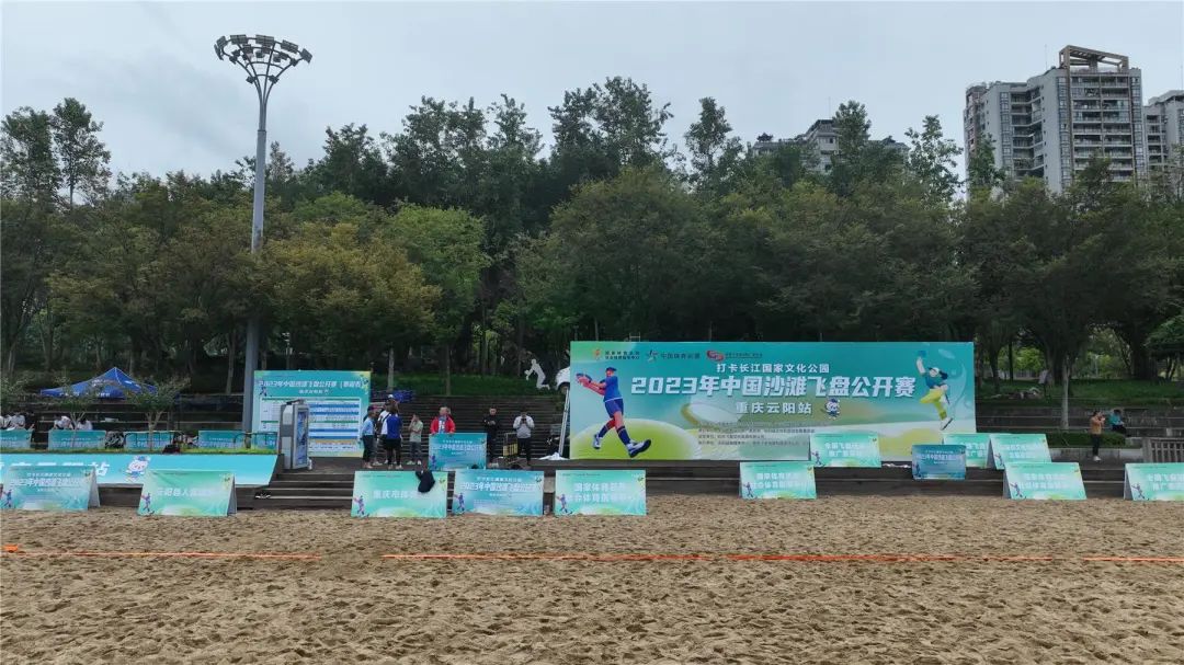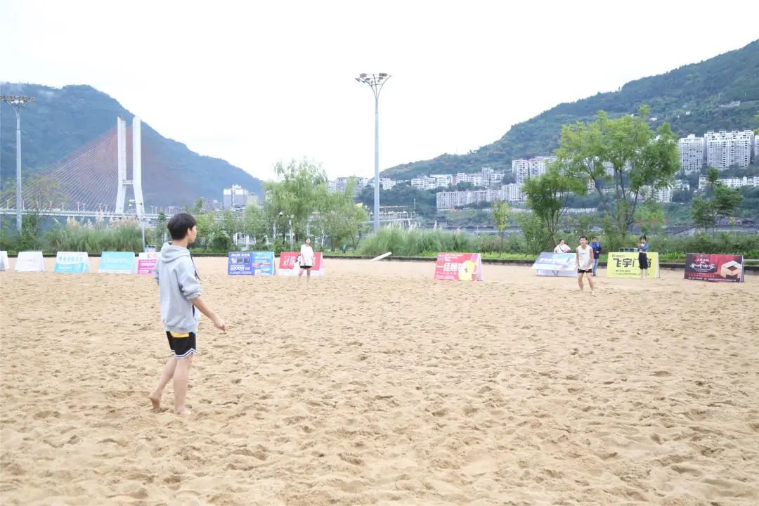 2023年中国沙滩飞盘公开赛(重庆云阳站)的比赛场地就是市民熟知的阳光沙滩。自2017年以来,阳光沙滩共承办了6届全国沙滩排球巡回赛和1届全国冠军赛以及全国沙滩足球锦标赛等大型体育赛事。