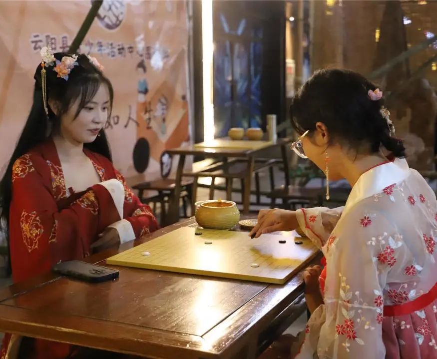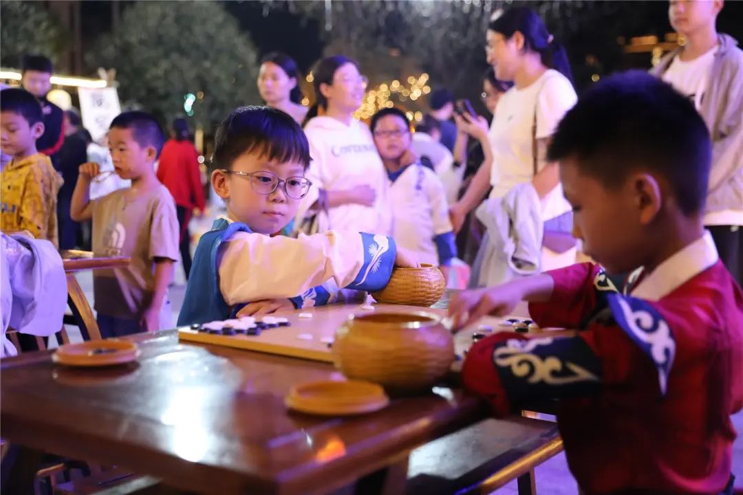 除了围棋、古筝,现场还有焚香、插花、挂画、点茶 等文人雅士风俗体验,也有蹴鞠、投壶等活动可以体验,更有精彩绝伦的“打铁花”非遗民俗表演,给予游客可食、可购、可看,有潮、有玩、有趣的假期氛围。