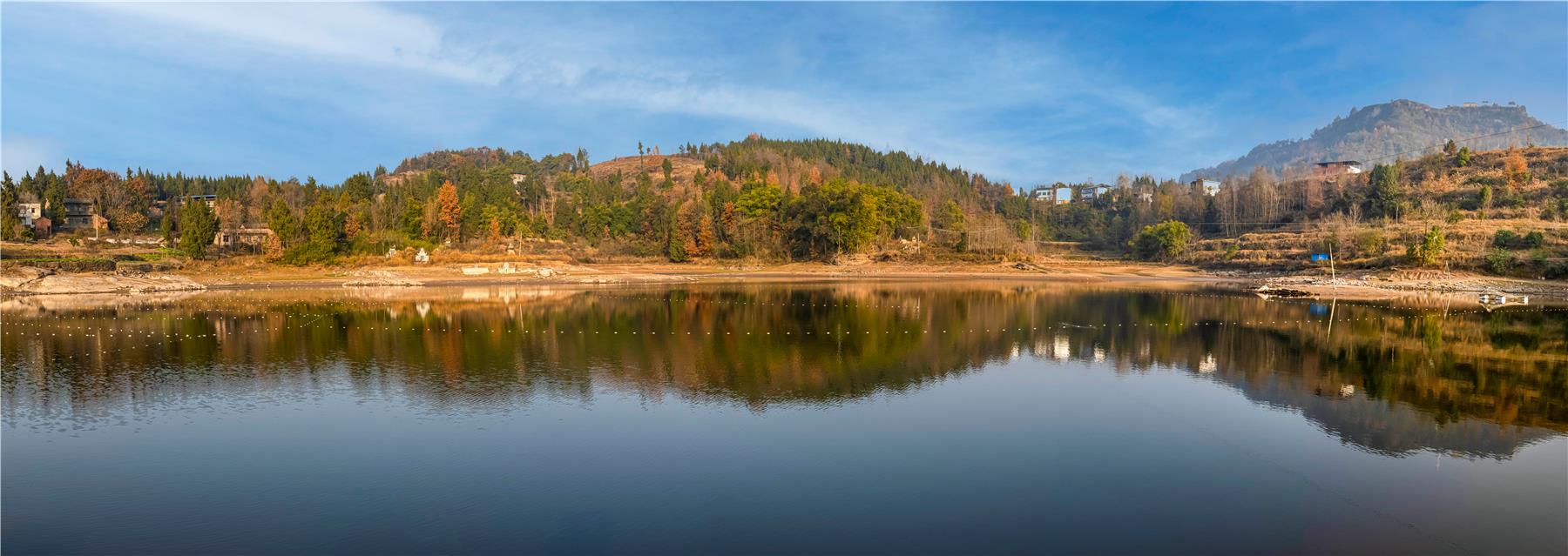 近日,我县渠马镇白岭村沐浴在秋日暖阳里。秋水空明,色染山影,远树如烟,白岭村秋色如画。(唐嵩涛 冯克琼 摄)