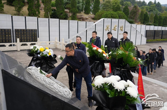 在庄严肃穆的县烈士陵园,全体党员干部怀着对英雄的缅怀和对烈士的追思敬献花篮。大家手持鲜花,有序登上烈士纪念碑基座,缓步绕行,瞻仰烈士纪念碑,并献上手中的鲜花,表达对英雄的缅怀、对烈士的敬意。活动期间,县退役军人事务局还联合辖区各乡镇(街道)退役军人服务站,走访慰问烈士亲属,向他们送去党和国家的关怀。