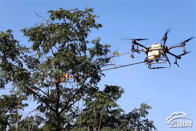 “人工清除马蜂窝的话,人一靠近就会惊动马蜂,容易造成伤人现象。”无人机技术员管发祥介绍,用无人机清除一个马蜂窝只需要5分钟左右,更加安全、精准、快速。